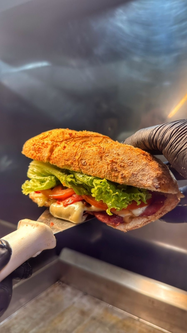 2 LANCHES DE CALABRESA ACEBOLADA NO PAO DE BAGUETE, MUSSARELA, ALFACE E TOMATE